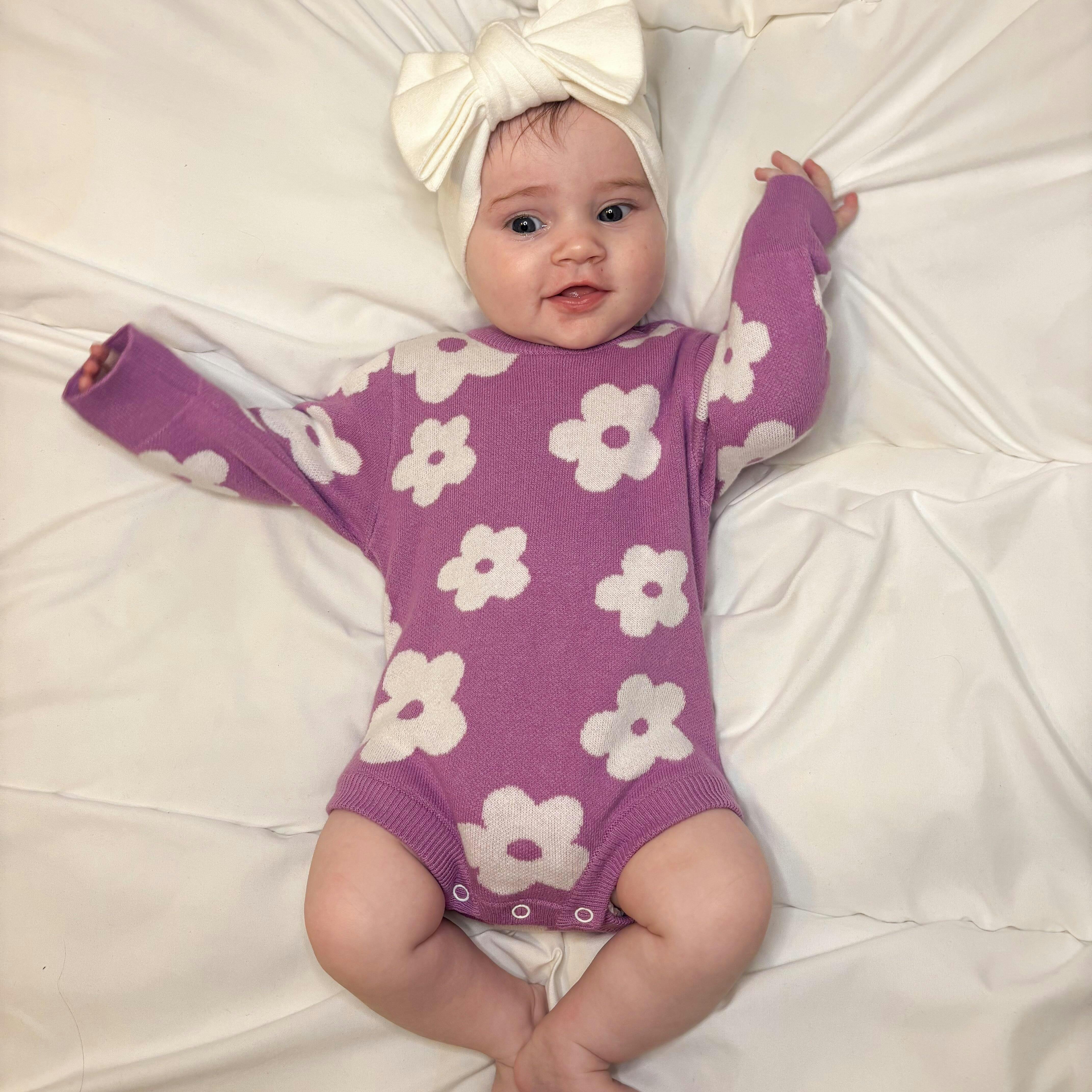 Our Bloom & Snuggle romper is made out of the softest knitted cotton.